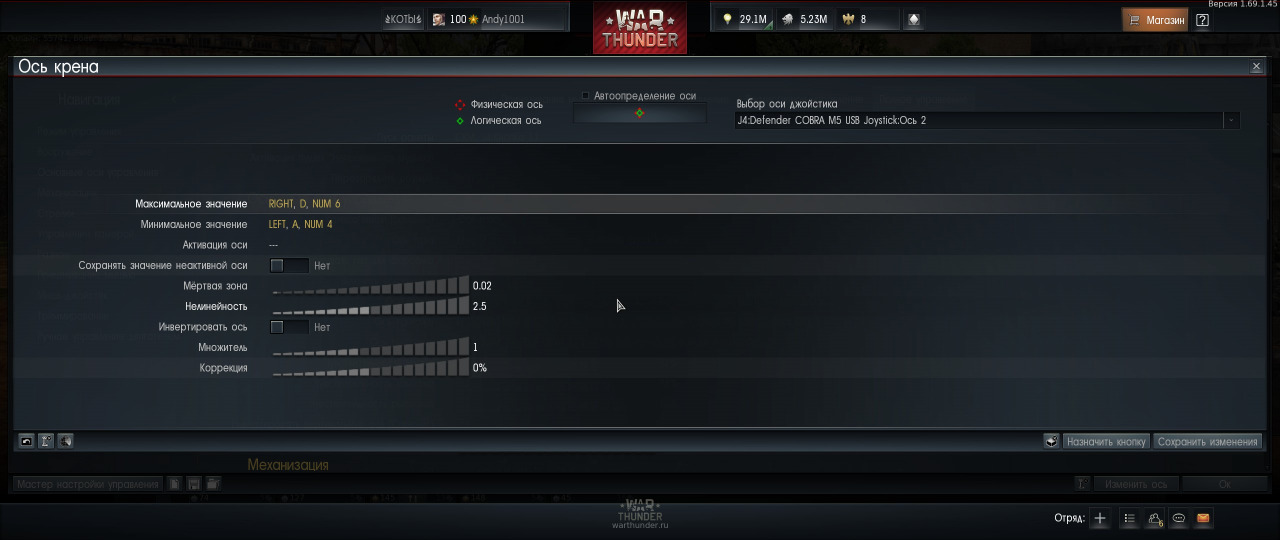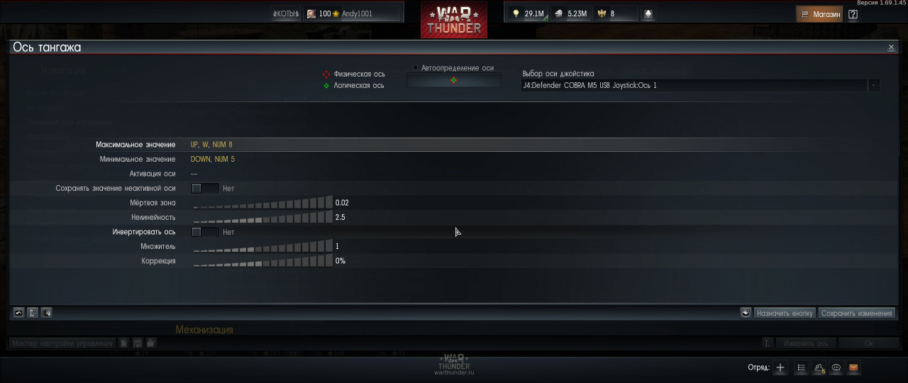 Konfig joysticka vo WT (Настройки джойстика в WT)