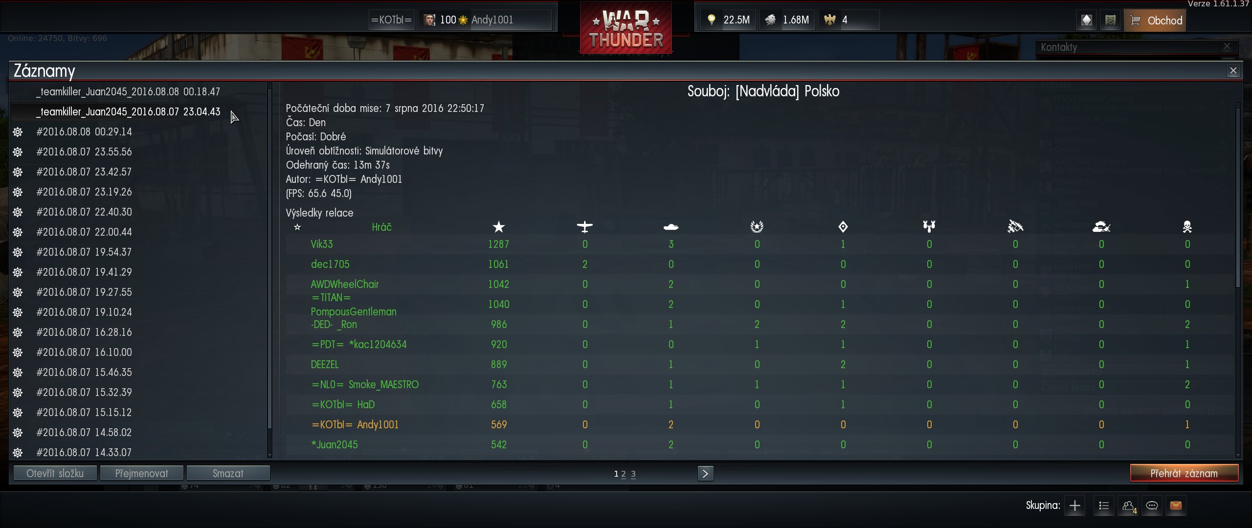 Priamo v bitve sa mi ospravedlnil, s tvrdením, že nepoznal môj tank na vydialenosť 1800m. Akceptoval som to a spolu s mojim spoluhráčom sme na neho podali žalobu. Neskôr keď znovu po mne strieľal, tak tvrdil, že po mne nestrieľal a nezabil ma. Tak tu je dôkaz - ZABIL ma.